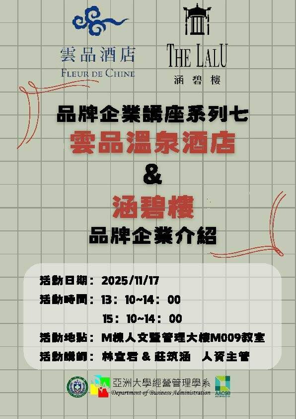 首頁 | 亞洲大學 | 管理學院 | 行事曆 | 聯絡我們 |